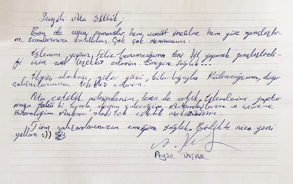İşlemi yapan Filiz hanımcığıma beni fit yaparak gençleştirdiği için çok teşekkür ederim. Emeğinize sağlık.