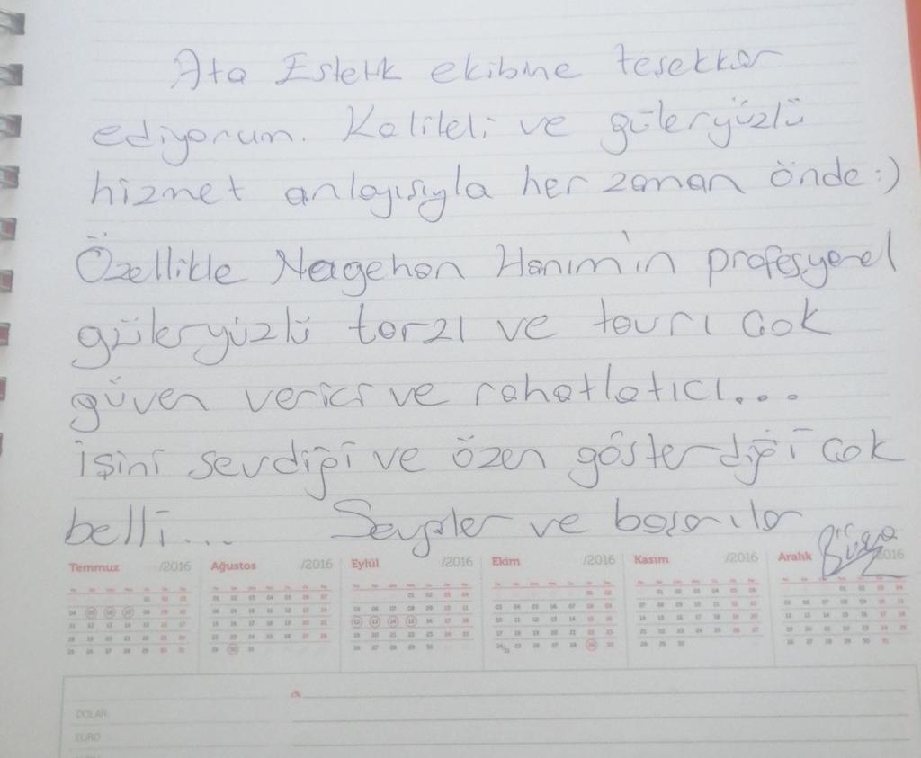 Ata Estetik ekibine teşekkür ediyorum. Kaliteli ve güleryüzlü hizmet anlayışıyla her zaman önde. Özellikle Nagihan hanım'ın profesyonel güleryüzlü tarzı ve tavrı çok güven verici ve rahatlatıcı...
